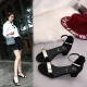 韩版2017夏季新款金属扣平底一字型拖鞋复古休闲罗马沙滩女拖防滑