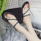 凉鞋女夏季夹脚波西米亚夹趾罗马坡跟凉鞋一字扣水钻宝石搭扣平底
