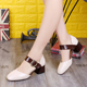 2017春季新款百搭皮带扣方头单鞋韩版漆皮粗跟高跟鞋中跟浅口女鞋
