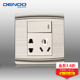 丹珑开关插座面板正五孔插座错位十孔插座香槟拉丝4D乳白