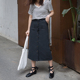CBOMB/2017ss 轻复古显高排扣高腰口袋A字半裙长裙 女q957