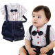 新款婴儿童装男童女童衣服春夏装 宝宝短袖短裤T恤背带裤绅士套装