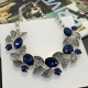 蓝色水晶古银叶子镶钻项链女配饰挂件吊坠优雅百搭短款锁骨链饰品