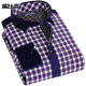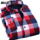 欧比森秋冬新款中年男士格子保暖长袖衬衫加绒加厚爸爸装男装衬衣