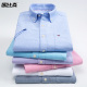 欧比森夏季牛津纺衬衫男长袖青少年全棉韩版修身休闲衬衣男装寸衫