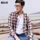 欧比森夏季新款休闲水洗牛津纺格子男士长袖衬衫男韩版修身衬衣男