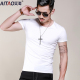 艾淘男士短袖t恤圆领纯白色体恤修身纯色打底半袖夏季男装衣服
