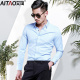 艾淘新款秋装黑白衬衫男长袖纯色衬衣商务休闲韩版修身棉男士正装
