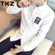 春秋季男衬衣男士韩版休闲长袖衬衫男白字母印花修身学生衣服男