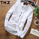 男士秋款长袖衬衫韩版纯棉寸衣男修身白色长袖棉麻衬衣男装上衣潮