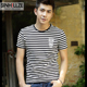 夏季潮流圆领海魂衫男士短袖T恤 条纹修身大码男装打底衫半袖t恤