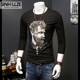欧洲站 莫代尔丝光棉男士长袖t恤韩版修身印花体恤男装冬季衣服男