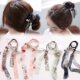 韩国头发饰发绳仿珍珠蝴蝶结碎花丸子头盘发器造型工具花苞头