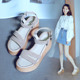 2017新款韩版夏季凉鞋女厚底魔术贴中跟鞋子女休闲平底松糕底女鞋