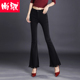 尚驭休闲裤女黑色流苏微喇裤2017春新款弹力通勤喇叭裤紧身裤长裤
