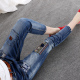 秋季新款破洞牛仔裤女裤子夏九分裤贴布哈伦裤宽松显瘦修身小脚裤