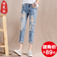 新款九分牛仔裤女2017春夏季新款刺绣破洞小脚裤宽松显瘦哈伦裤薄