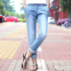 浅蓝色直筒牛仔裤女 宽松韩版学生修身显瘦弹力长裤2017春夏新款