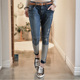 八分微喇叭破洞牛仔裤女弹力七分裤休闲显瘦 九分牛仔裤女7分裤