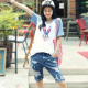 高腰牛仔短裤女夏宽松破洞阔腿a字短裤mm学生卷边补丁贴显瘦热裤