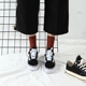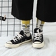 韩国ulzzang原宿港风卡通黑白简约中筒棉袜子 男女情侣百搭长袜潮