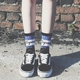 vetements明星同款瘦腿 VT维特萌中筒字母条纹情侣打底针织短袜子