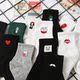 韩国ins 情侣滑板黑白短袜刺绣日系原宿潮流学院中筒纯棉男女袜子