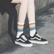 韩国ulzzang原宿港风潮牌彩虹条纹纯色中筒棉袜子 男女情侣长袜子