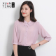 轩腾夏装女装交叉立领雪纺衬衫女韩范上衣清新甜美七分袖短袖衬衣