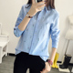 2017春装新款蓝色竖条纹衬衫女长袖韩版百搭宽松纯棉打底衬衣刺绣