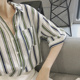 2017春夏新款韩版Polo领条纹半袖衬衫上衣学院风百搭棉麻衬衣上