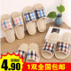 新品情侣拖鞋英伦格子男女拖鞋 亚麻 春夏室内外地板情侣居家拖鞋