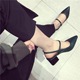 复古大牌后空单鞋韩版搭扣尖头粗跟高跟鞋罗马凉鞋子百搭工作女潮