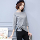 春夏纯棉一字领七分袖t恤女韩版新款拼接蝴蝶结宽松百搭文艺小衫