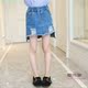 米米果家2017春女童牛仔裙前短后长露字母半身裙包臀裙破洞短裙子