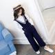 女童套装夏季童装新款2017公主屋中大童休闲条纹两件套儿童运动服