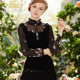 贝莎玫瑰淑女气质雪纺衫粉红玛丽刺绣钉珠印花蕾丝衫修身显瘦上衣
