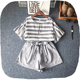 2017夏装新款时尚套装女 圆领条纹T恤+松紧腰纯色短裤 学生两件套
