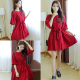 中长款灯笼袖圆领收腰系带灯芯绒连衣裙宽松纯色百搭休闲裙中裙女