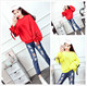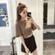 初春新款韩版一字领露肩修身百搭褶皱喇叭袖T恤短上衣打底衫女787