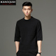 夏季七分袖中袖男士T恤韩版宽松t桖衫日系7分袖T恤男装短袖潮牌