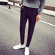 35y九分裤男士英伦休闲裤韩版修身男裤青年小脚裤男黑色哈伦9分裤