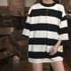 春夏韩国宽松粗条纹短袖中长款情侣T恤女圆领撞色大码上衣潮 4色