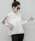 茗茗实拍新款春装韩版刺绣小立领七分袖不规则边修身显瘦短款衬衫