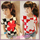夏女童装新款 格子大花朵蝙蝠圆领短袖t恤 女宝童装 断码清仓