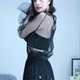 犀犀家性感网纱透视打底衫宽松领口镶钻钉珠灯笼袖女士上衣2017春