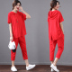 皇森正品休闲纯棉运动套装韩版宽松短袖连帽T恤中裤两件套潮女装