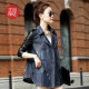 双排扣西装领牛仔褂女韩版七分袖牛仔外套A字型宽松上衣春秋斗篷