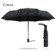 Cmon纯黑色全自动自开自收晴雨伞男士双人商务创意三折叠防风大伞