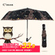 Cmon猫头鹰全自动潮雨伞晴雨两用三折叠女遮太阳伞防晒紫外线黑胶